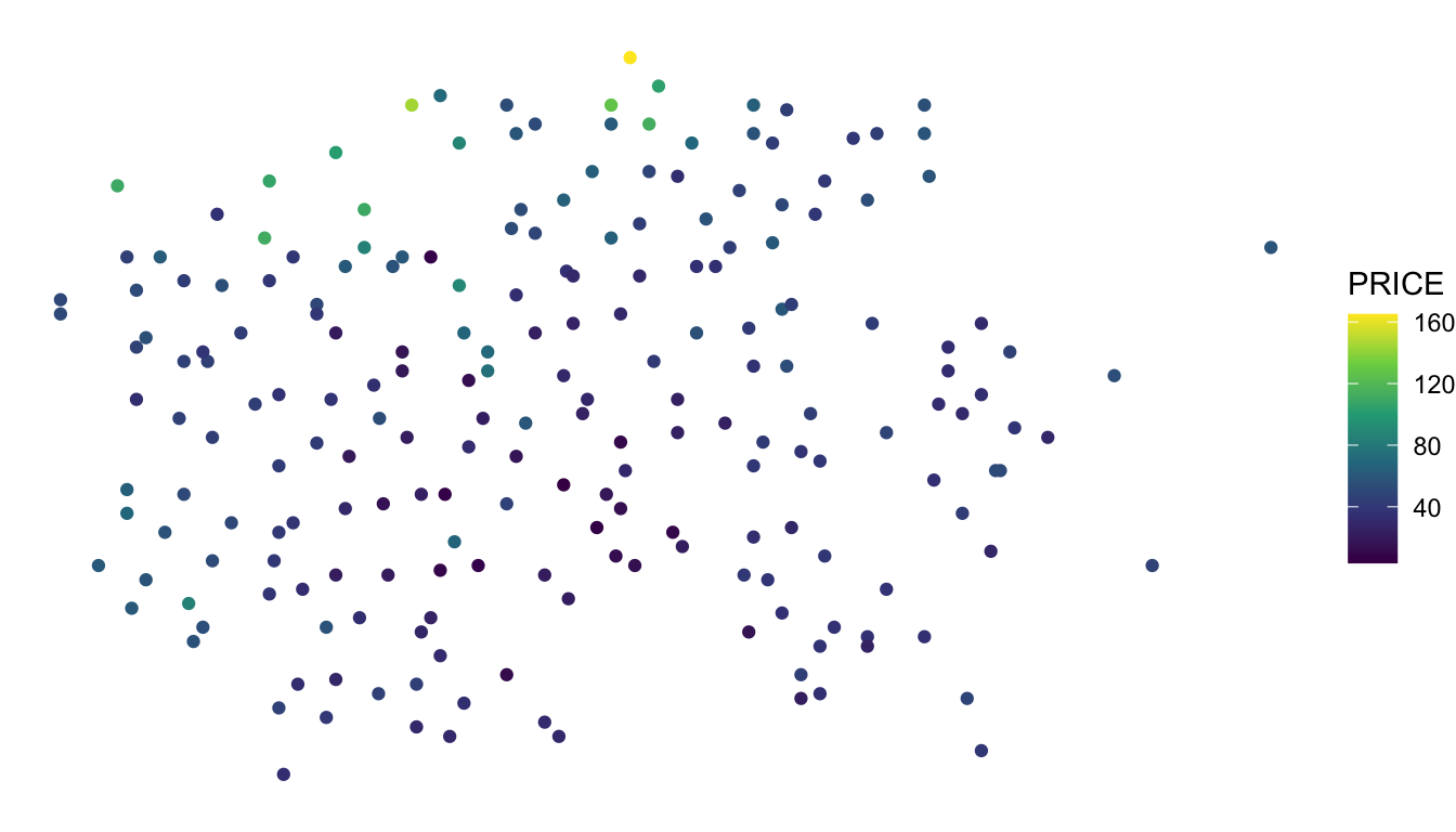 ggplot(data = baltimore_sf, aes(colour = PRICE)) +