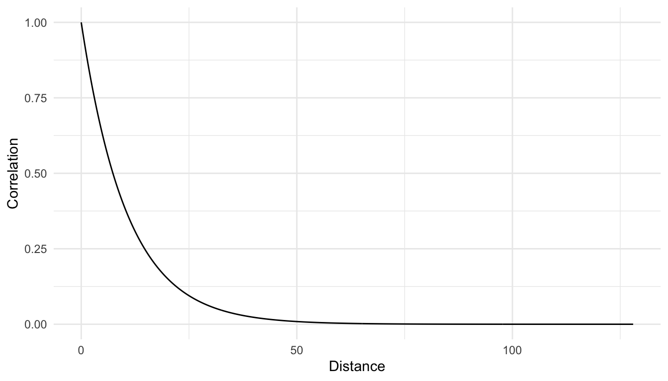 An example may help with an understanding of spatial correlation. A common spatial correlation function is the exponential function: